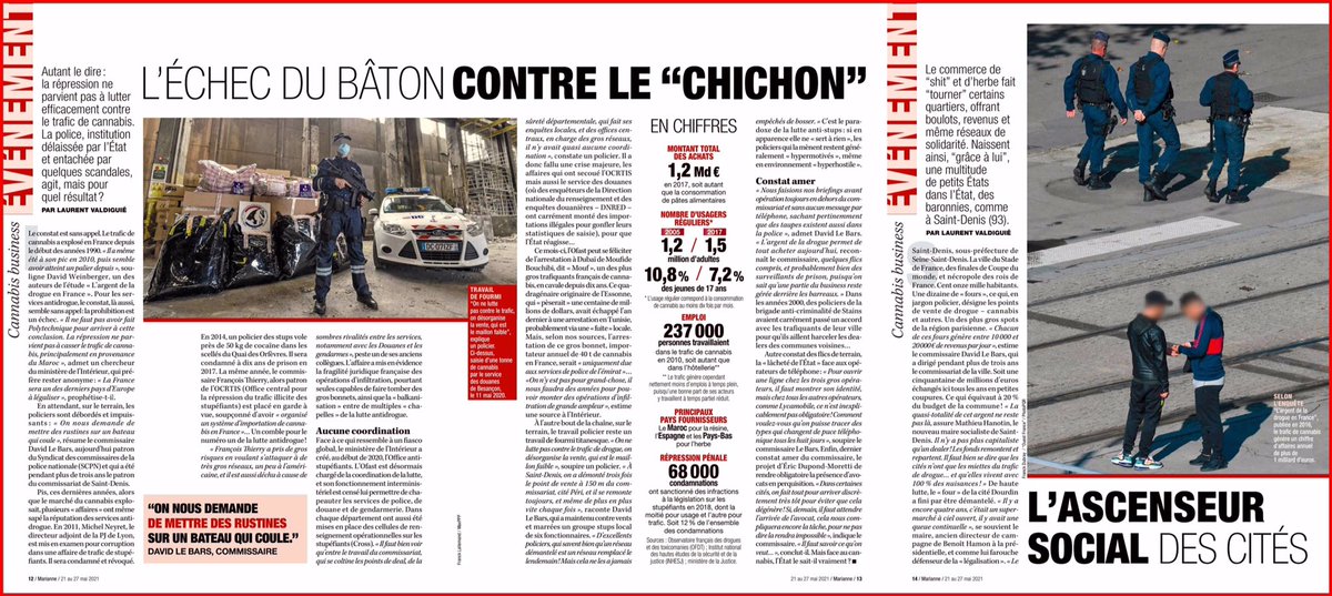 "يجب ان نتوقف عن النفاق، نحن الأعلى تعاطيا في كل أوروبا، و" تقنين القنب " سوف يحد من الخطر الذي يتعرض له رجال الشرطة خلال ملاحقتهم للمهربين والمروجين، كما سيقضي على شبكات المخدرات، ويجب أن يتحلى السياسيون العاجزون بالشجاعة، ويقوموا بالتقنين..على #ماكرون أن يفعل ذلك" .