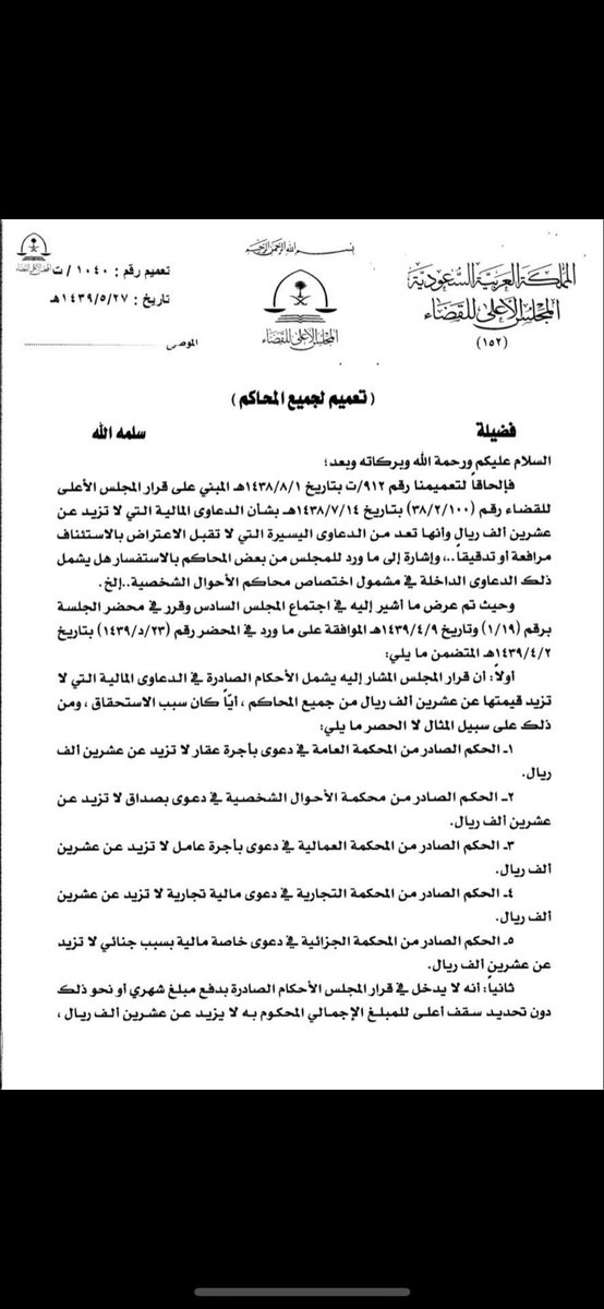 7️⃣لم يعد العمل سارياً بالمواد المتعلقة بالتمييز في نظام المرافعات لعام 1421 في كل الأحكام الصادرة اعتباراً من اليوم، ويبقى سارياً فيما يخص الاعتراض بالتمييز على الأحكام الصادرة في يوم 1442/10/8 أو قبله ولم تكن مشمولة بمراحل تفعيل الاستئناف...يتبع