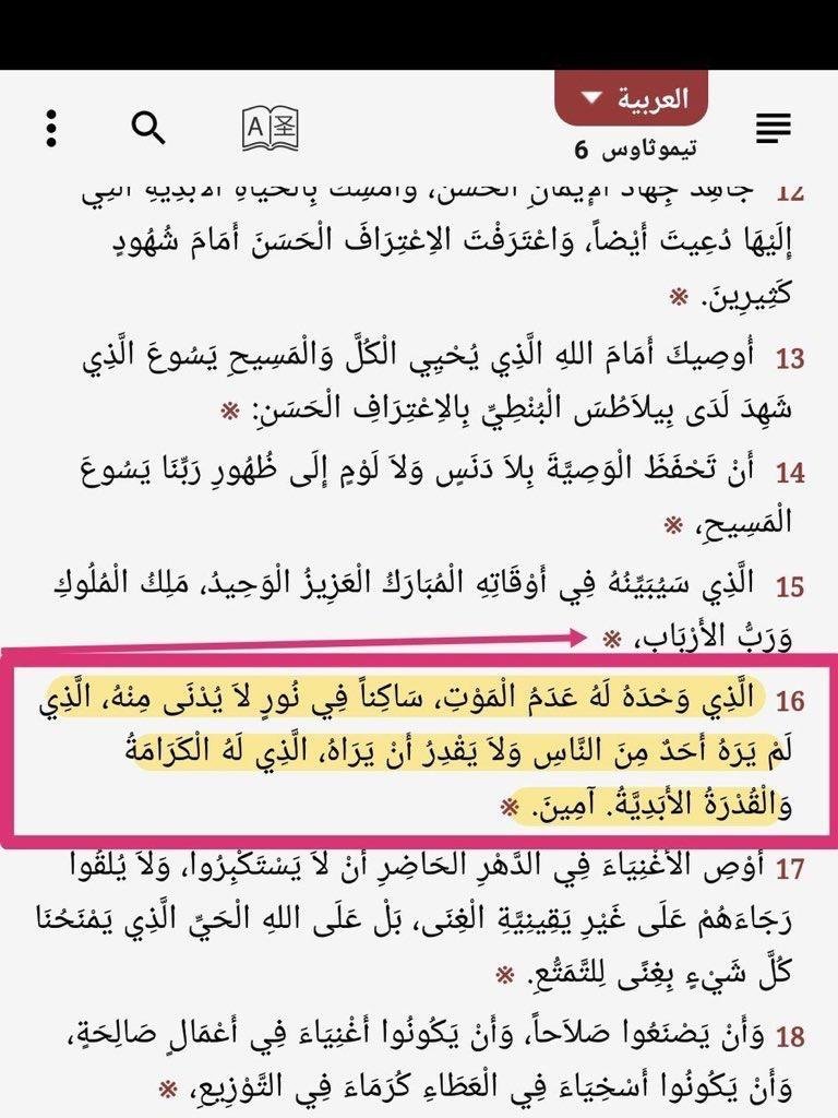 16)ملك الملوك ورب الاب الذي وحده له عدم الموت