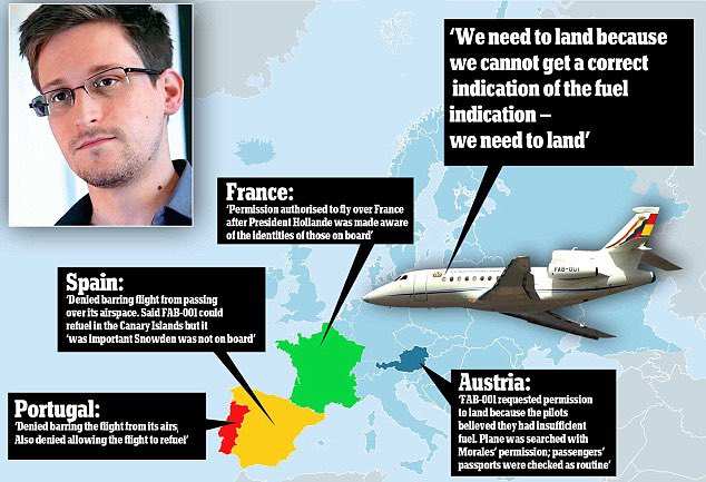 رد اوروبا و امريكا على بلطجة الرئيس الأزعر مستحق، لكنهم منافقين. في ٢٠١٣ أُغلقت سماء اوروبا في وجه طائرة الرئيس البوليفي العائد إلى بلاده بعد زيارة لموسكو، و هبطت الطائرة "مجبرة" في مطار فيينا، بسبب شكوك وجود ادوارد سنودن على متن الطائرة! سنودن لجأ إلى موسكو بعد اتهامه بالتجسس