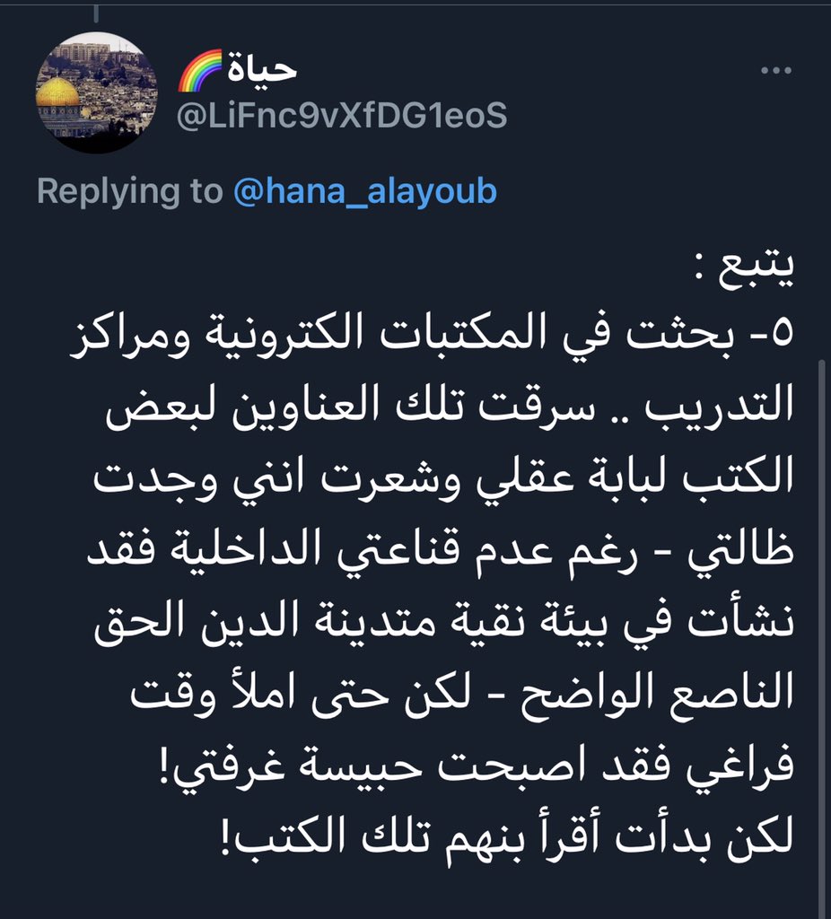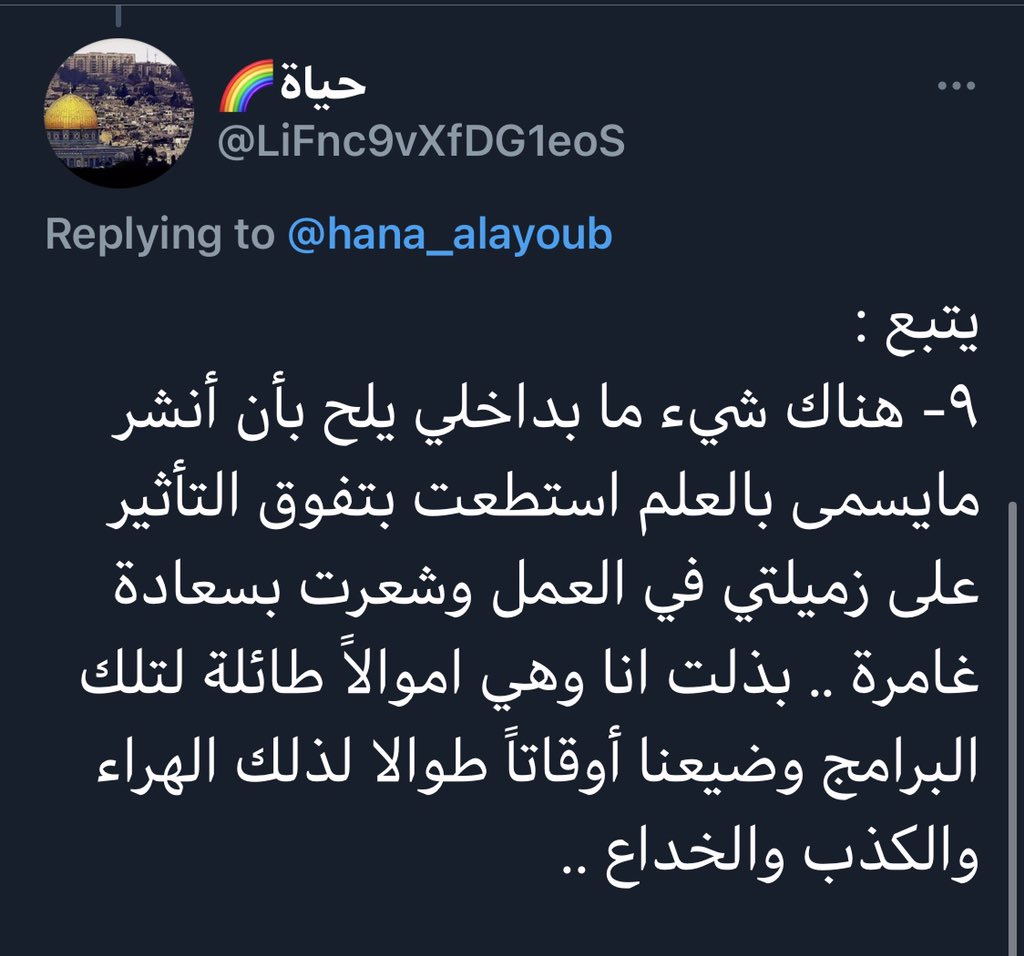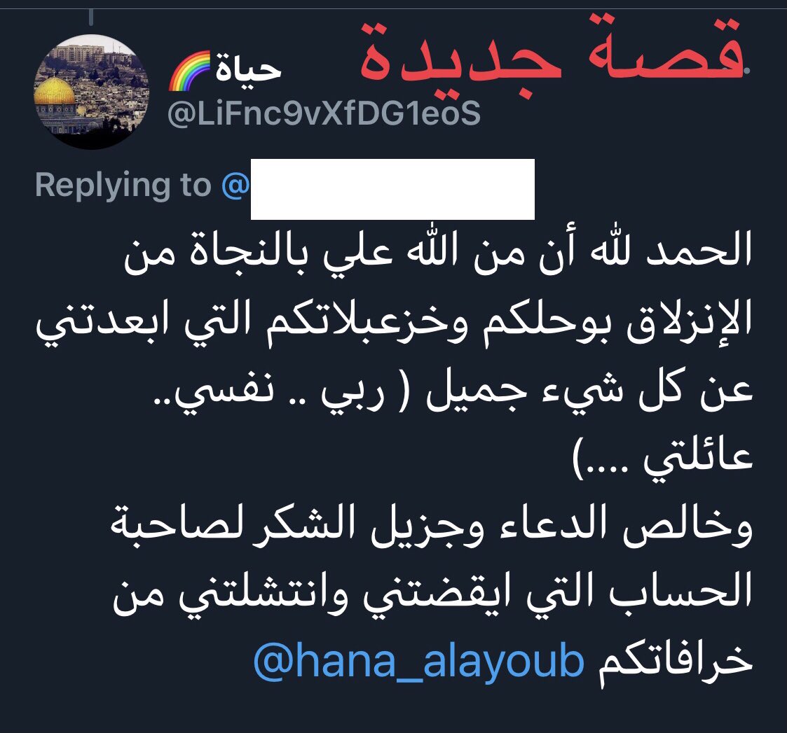 ختامًا نبارك لأختنا العودة من دهاليز ذلك الهراء، ونسأل الله لها الثبات، وندعو لجميع المخدوعين والمخدوعات العودة والعافية والسلامة..