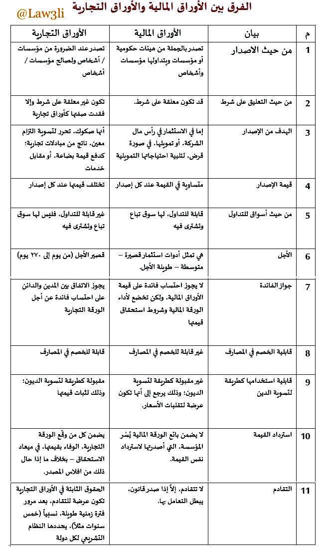 ١٤٢- مقارنة بين #الأوراق_التجارية و الأوراق المالية.