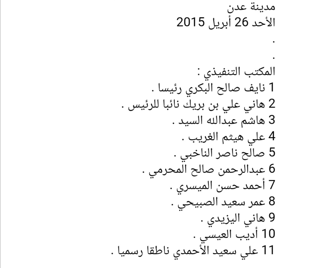 #عدن عن مجلس المقاومة الجنوبية بتاريخ 26 أبريل 2015: