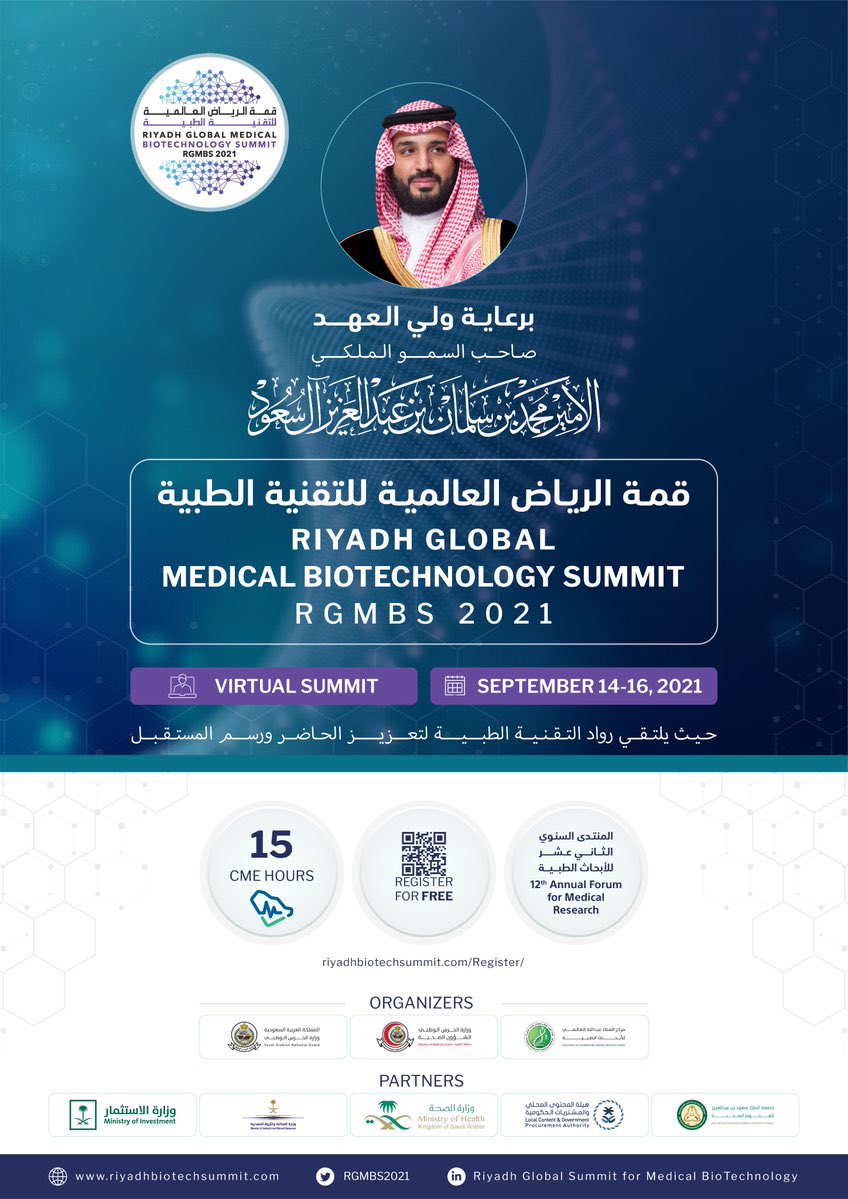تحت رعاية ولي العهد تنطلق القمة والمنتدى السنوي الثاني عشر للأبحاث الطبية المصاحب له