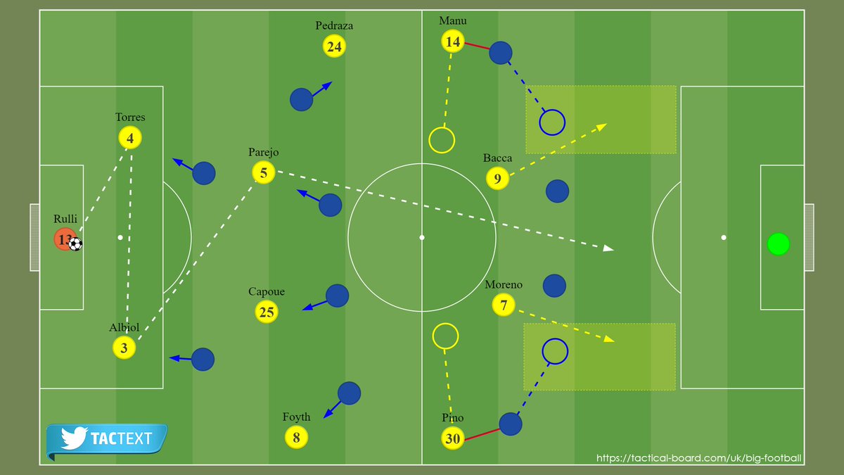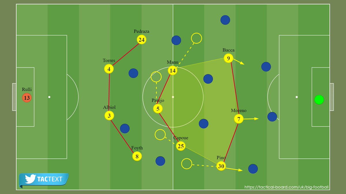 هذا الأمر يتسبب في الكثير من الأوقات بمساحات كبيرة في دفاع فياريال خصوصاً مع بطئ قلبي دفاعه راؤول ألبيول وباو توريس وعدم تمتعهما بسرعةٍ كبيرة