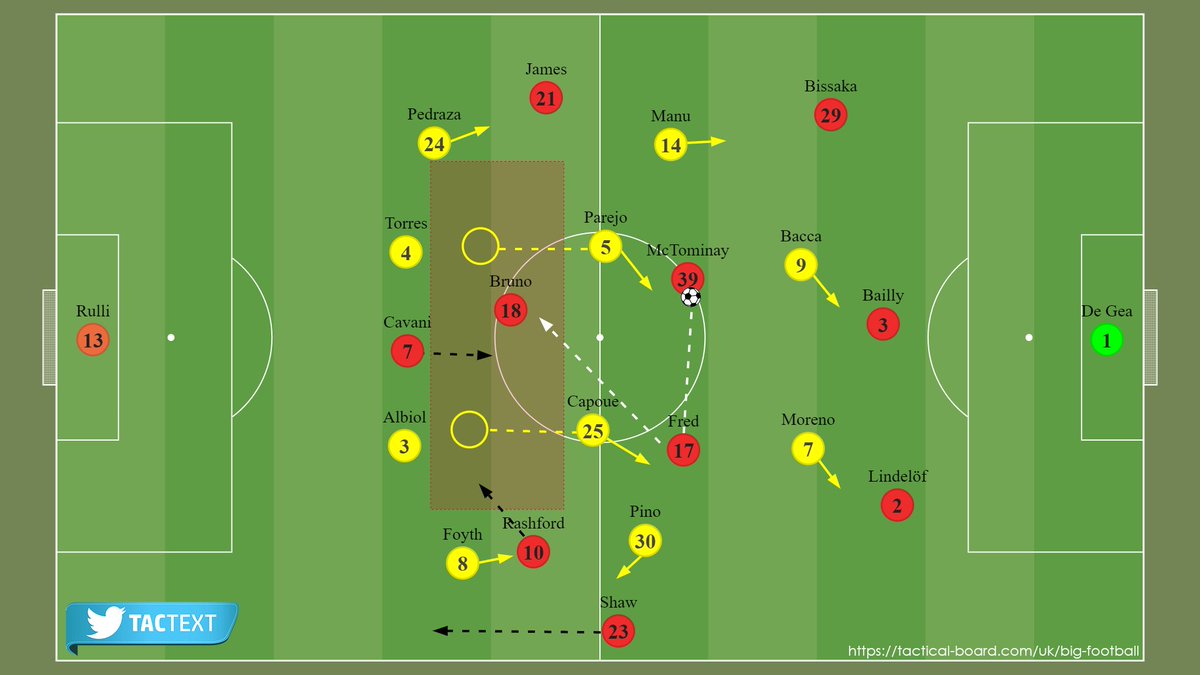 مع تقدم فياريال بالكرة، من المهم أن يُحافظ #يونايتد على إغلاق العمق بشكلٍ متواصل، الأمر الذي يزيد من أهمية البدء بالثنائي [فريد - ماكتومناي].