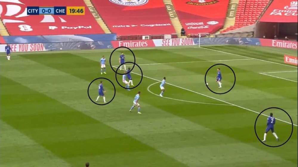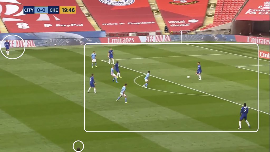 بناء تشيلسي هو لغز صعب الحل. إذا كنت تريد الضغط عليهم ، فأنت بحاجة إلى الكثير من الأرقام لمحاربة ما يصبح 7 لاعبين يتراكم عندما ينخفض ظهير الأجنحة بمقدار نظريًا ، استخدام ظهرك للضغط على الأجنحة لا ينبغي أن يكون مشكلة. يترك 2 في الوسط و 2 cbs ضد مهاجمي تشيلسي الثلاثة.