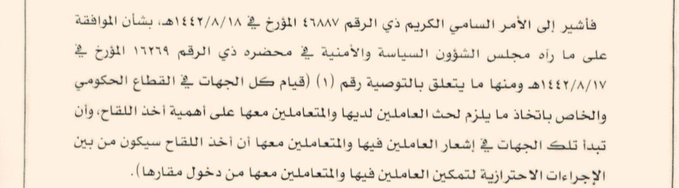 أيام ماكان هناك(بيان وزارة الموارد البشرية والتنمية الاجتماعية) والذي ينص على منع غير المُحصنين من الدخول لمقرات العمل
