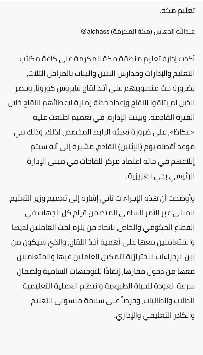 وعُبر عنه بقرارات صادره من كل جهة تلزم موظفيها بالجرعة اللقاحية