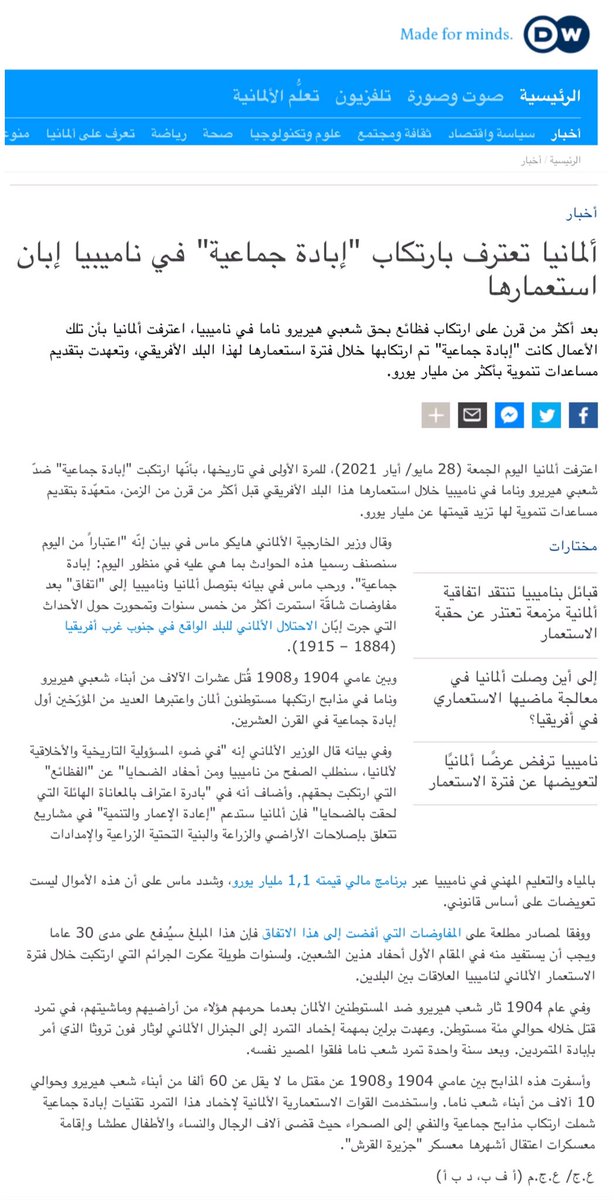 اعترفت #ألمانيا اليوم للمرة الأولى في تاريخها، بأنها ارتكبت " إبادة جماعية " في ناميبيا.