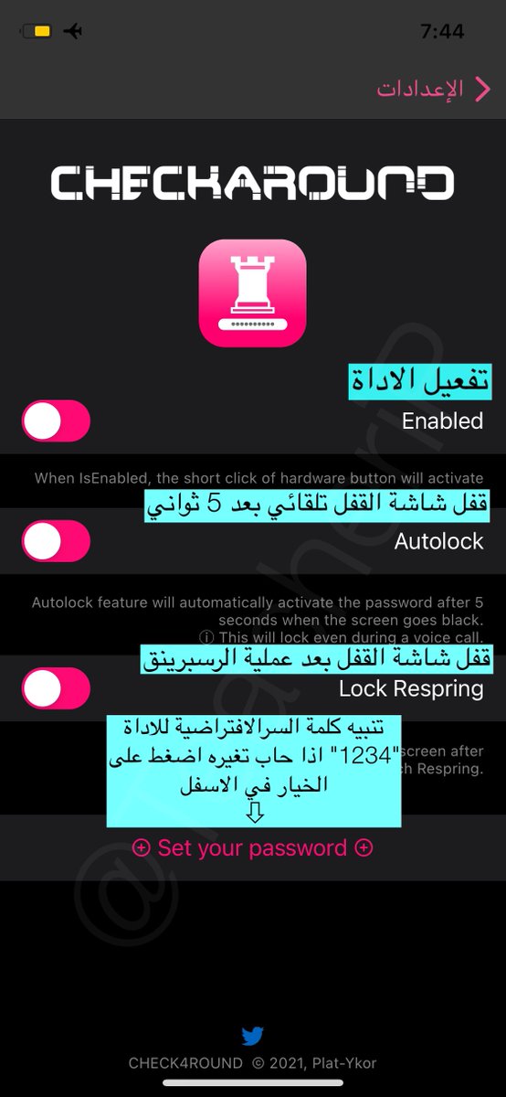 وظيفتها: خاصه بمستخدمين جيلبريك Checkra1n على ايفون 8 و 8 بلس وايفون X تمكنك من وضع رمز سري للشاشة القفل بطريقة مبتكره.
