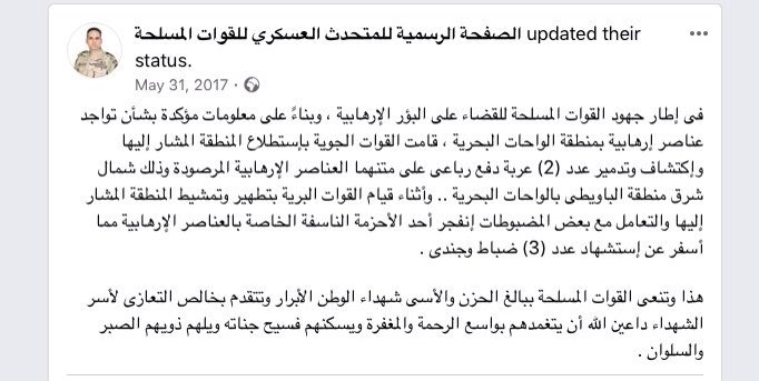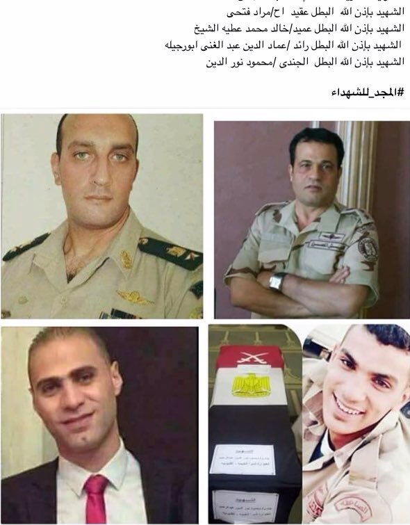 واللي إستشهدوا أثناء تمشيطهم لمنطقة الباويطي بالواحات البحرية إثر إنفجر حزام ناسف خاص بأحد التكفريين بعد مقتله فإستشهدوا ع الفور بتاريخ 31 مايو 2017 #لن_ننساكم #عظم_شهيدك