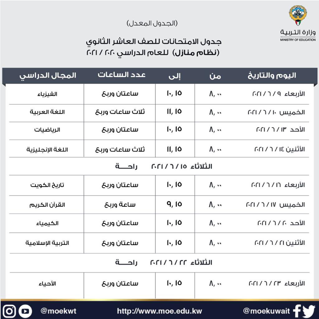 وأكد السلطان انطلاق الاختبارات يوم الثلاثاء الموافق 8/6/2021 وحتى يوم الخميس الموافق 2021/6/24،