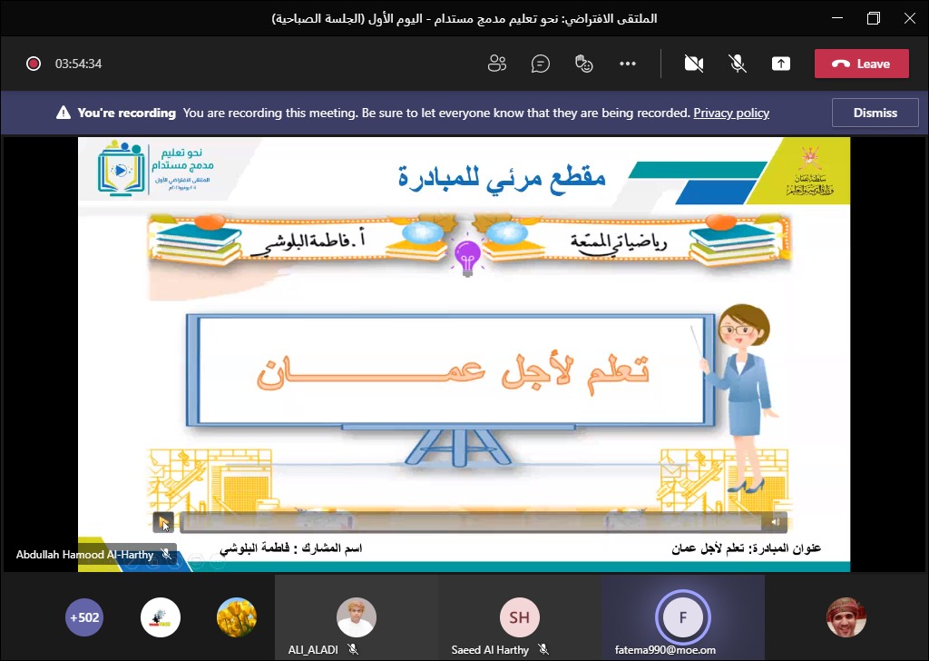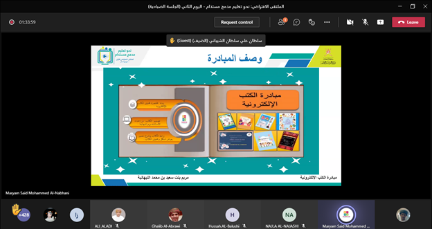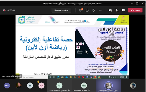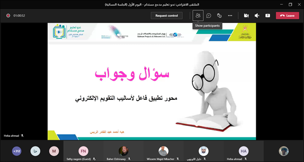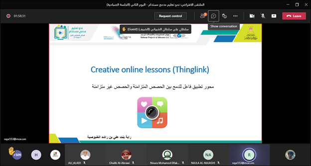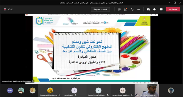 ضمن الجلسة المسائية 2 بالملتقى التربوي الافتراضي لمبادرات المعلمين الفاعلة في التعلم عن بُعد الأول #نحو_تعليم_مدمج_مستدام