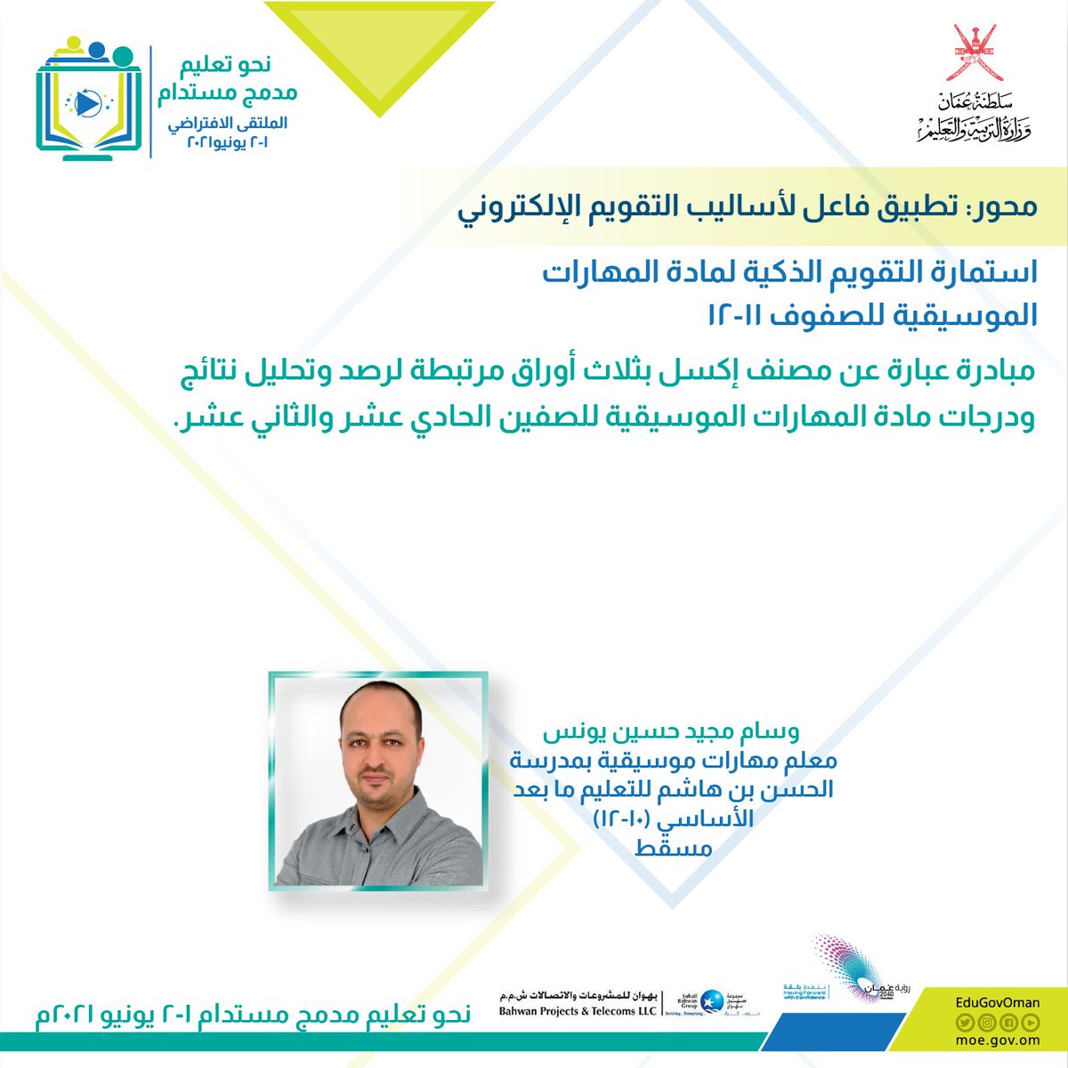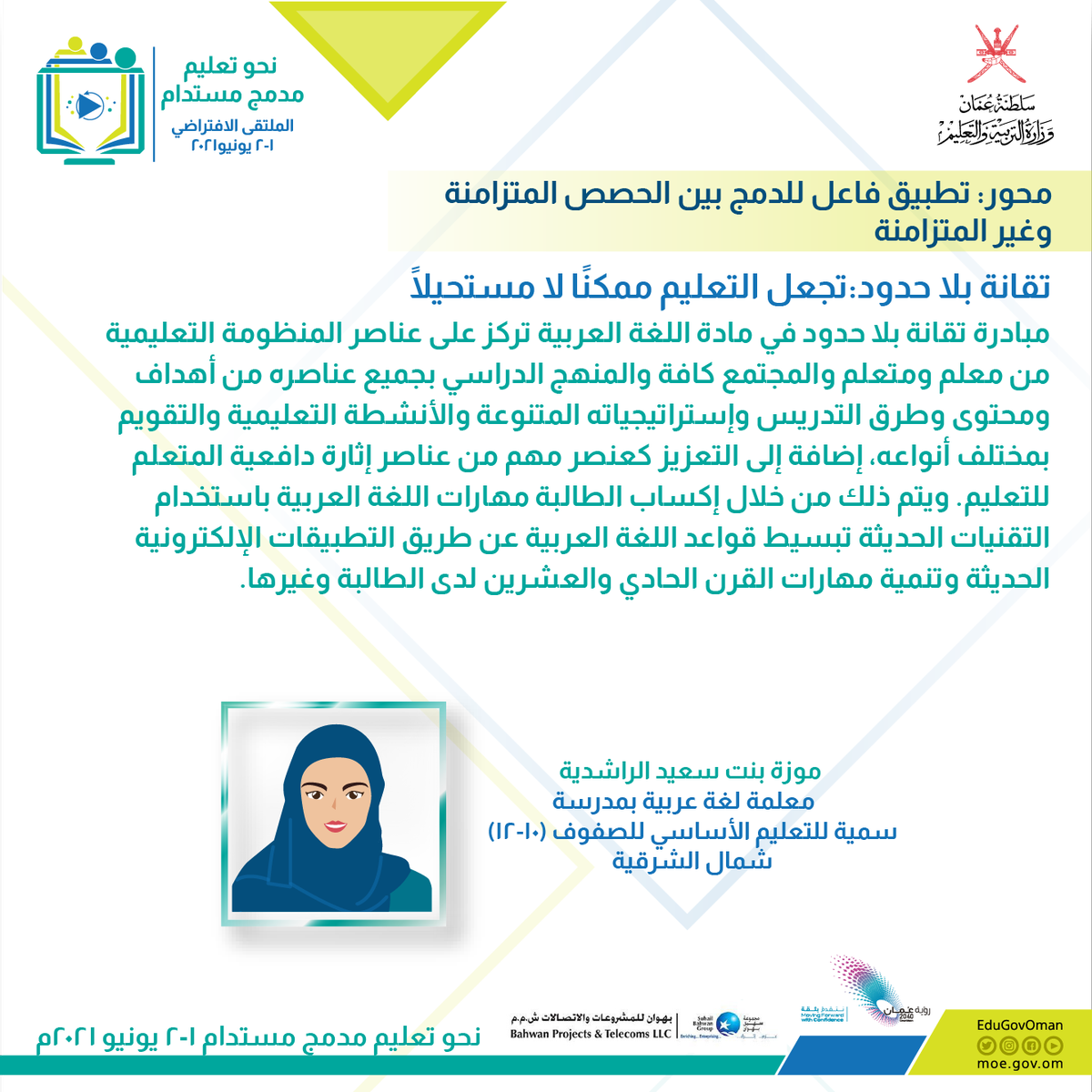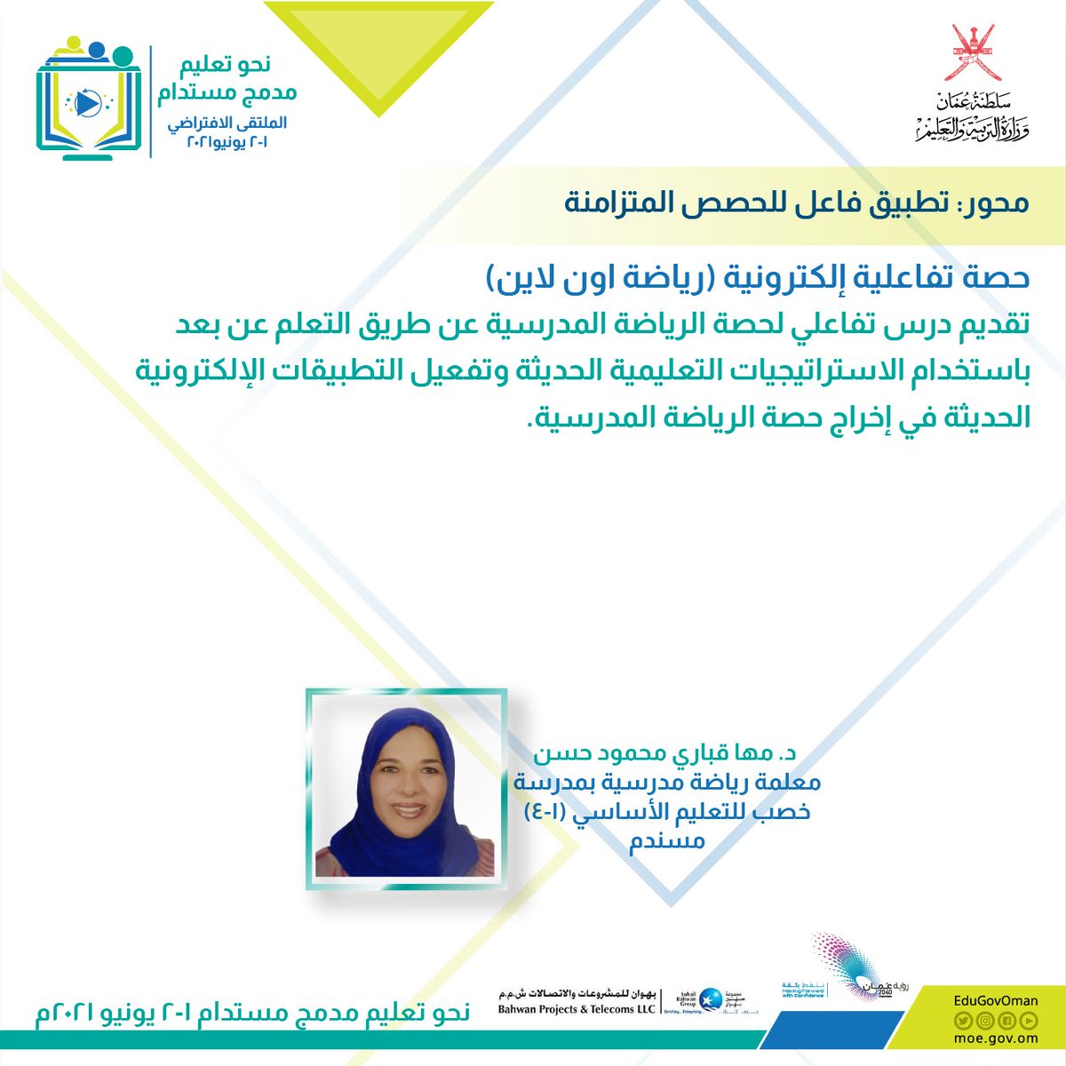 ضمن الجلسة المسائية 2 يونيو 2021 بالملتقى التربوي الافتراضي لمبادرات المعلمين الفاعلة في التعلم عن بُعد الأول #نحو_تعليم_مدمج_مستدام