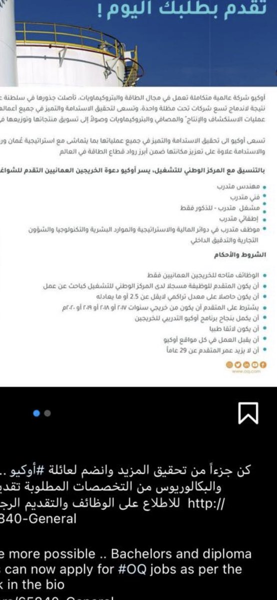 اتمنى من ممثلي ومسؤولي @Labour_OMAN النظر في القوانين المطروحة في التوظيف لشركة اوكيو ،، لأنا تفاجئنا بوجود اشخاص غير باحثين عن عمل يعملون في شركات كبرى ومقدمين معنا في المقابلة الاخيرة .. للعلم الوظائف طرحت للباحثين عن عمل فقط@mahadbaawain @ThisIsOQ