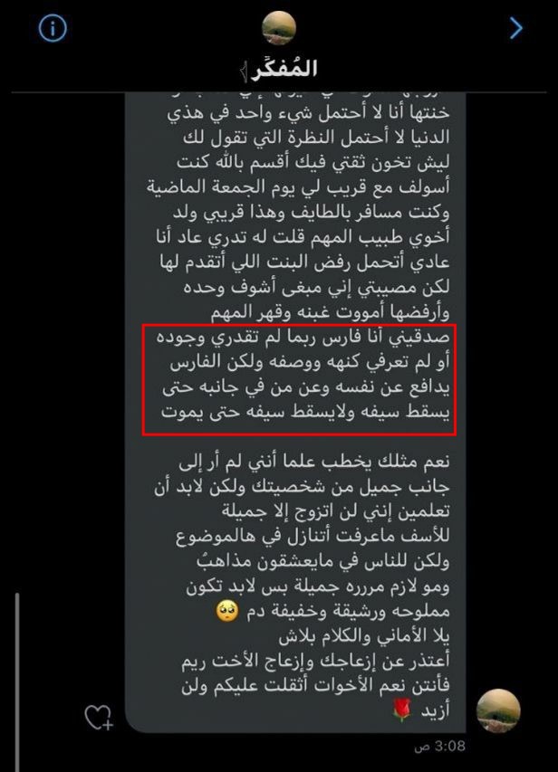 وصلتني ٣٤ صورة لمحادثات هذا الشخص ولكن لن استطيع مشاركتها جميعا