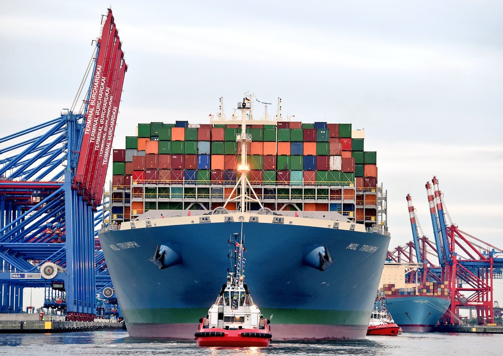 العملاقة التي بتنا نراها في غالب #الموانئ العربية اذ تبلغ حمولاتها 22 ألف حاوية مكافئة 23,000 TEUS بعد ان كانت لاتزيد عن 15 الف في السنوات السابقة وذلك لهدفين رئيسيين هما :