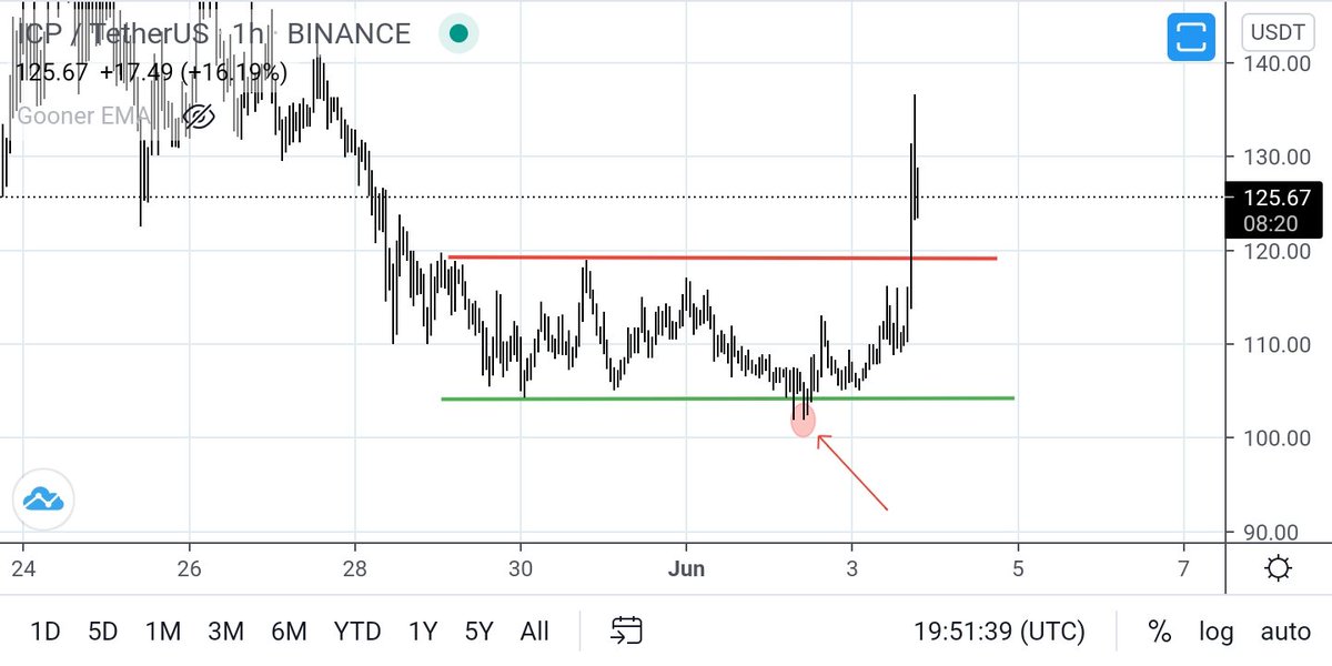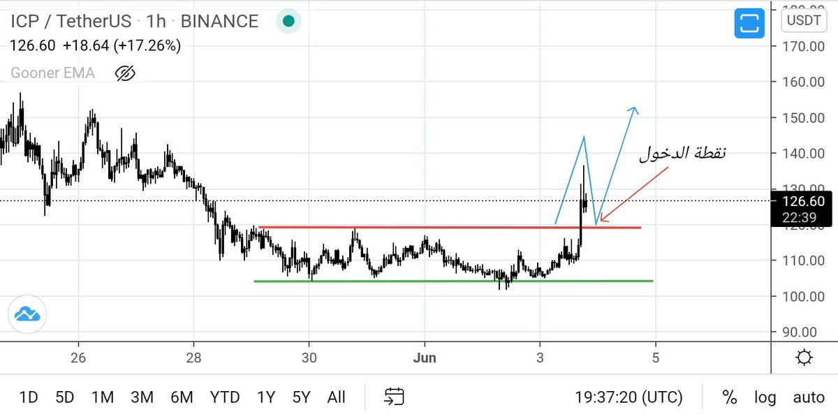 مثل ماذكرت فوق هذا النموذج موجود على عملة icp فريم الساعة بامكانك تدخل مع اعادة الاختبار تعلق امر شراء