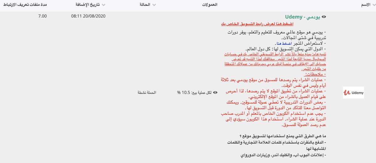 موقع سعودي متخصص بالتسويق بالعمولة موجود عندهم تقدرون تسجلون في الموقع وتبحثون عن #يوديمي نسبة العمولة 10% من كل بيعه تتم عن طريق رابطك.
