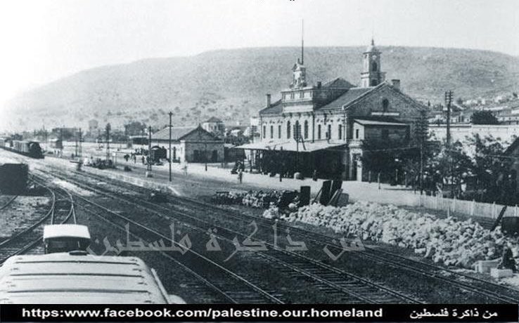 -محطة القطار في حيفا سنة ١٩١٧م: