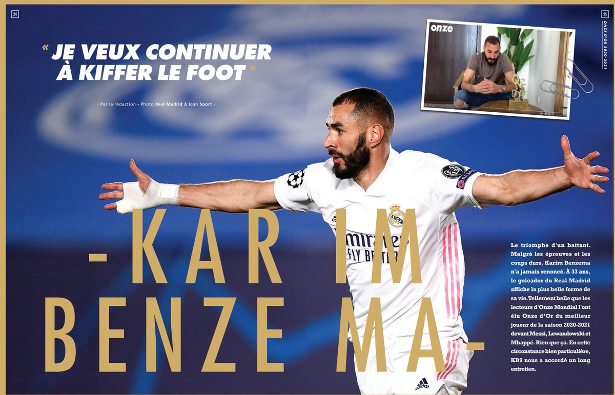 بنزيما: "كرة القدم تتغير، لا يُتحدث سوى عن الإحصائيات، إلخ. لكني أريد الاحتفاظ بحب كرة القدم الذي لديّ منذ صغري: التواجد في ميدان، إدخال السرور إلى قلوب الناس. من المؤكد أنه يجب تسجيل أهداف لكن لو يمكن أن يكون ذلك مصحوبًا بلمسات جميلة، تمريرات جميلة، تحركات، فلذلك أحب كرة القدم."