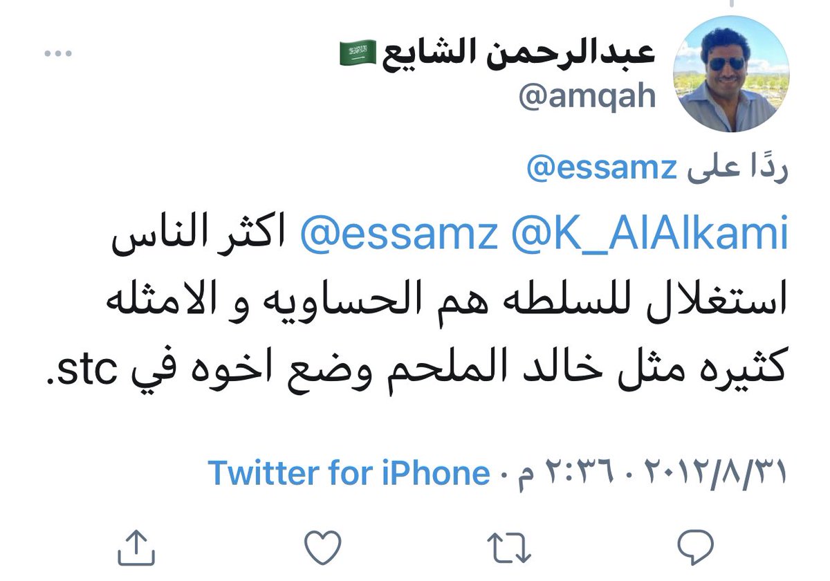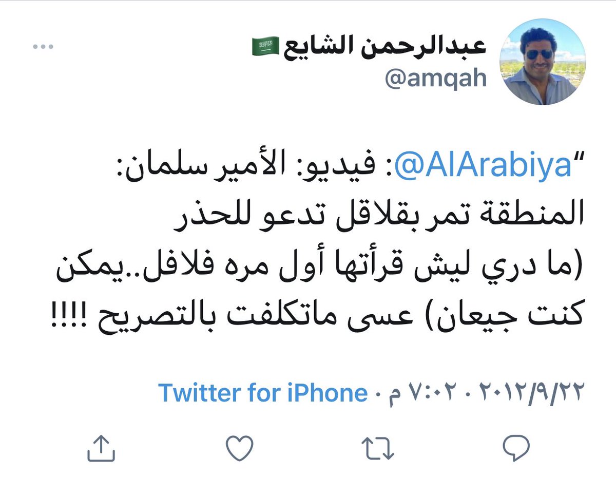 من يصدق ان هذه التغريدة لمسئول في #أرامكو_السعودية واسمع عبدالرحمن الشايع !!
