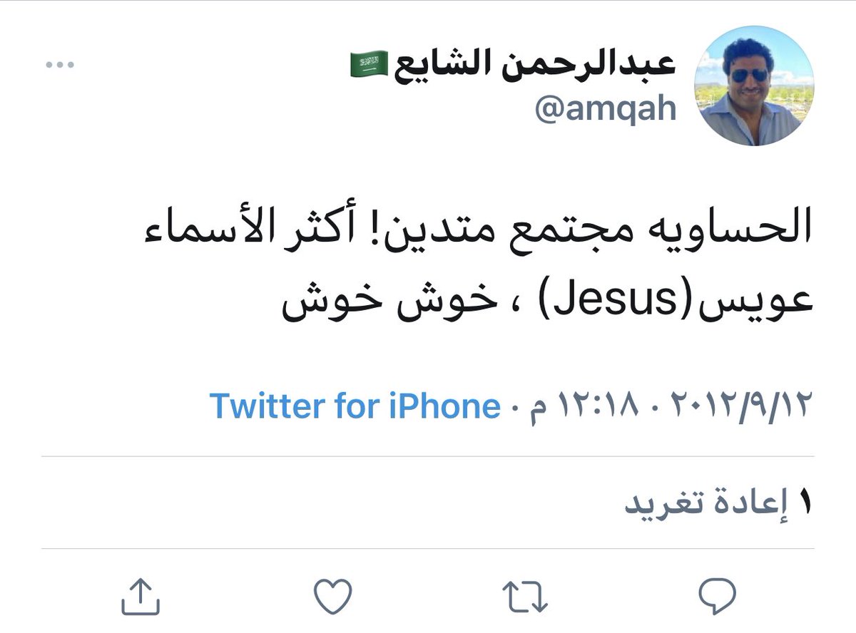 لا اعلم لماذا ينظر هذا المتعالي عبدالرحمن الشايع لاهالي الاحساء الطيبون البسطاء المتسامحون !!