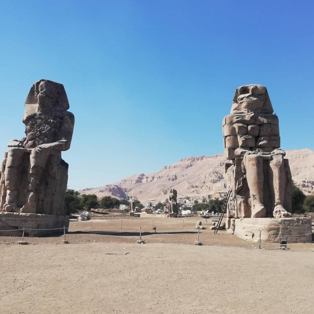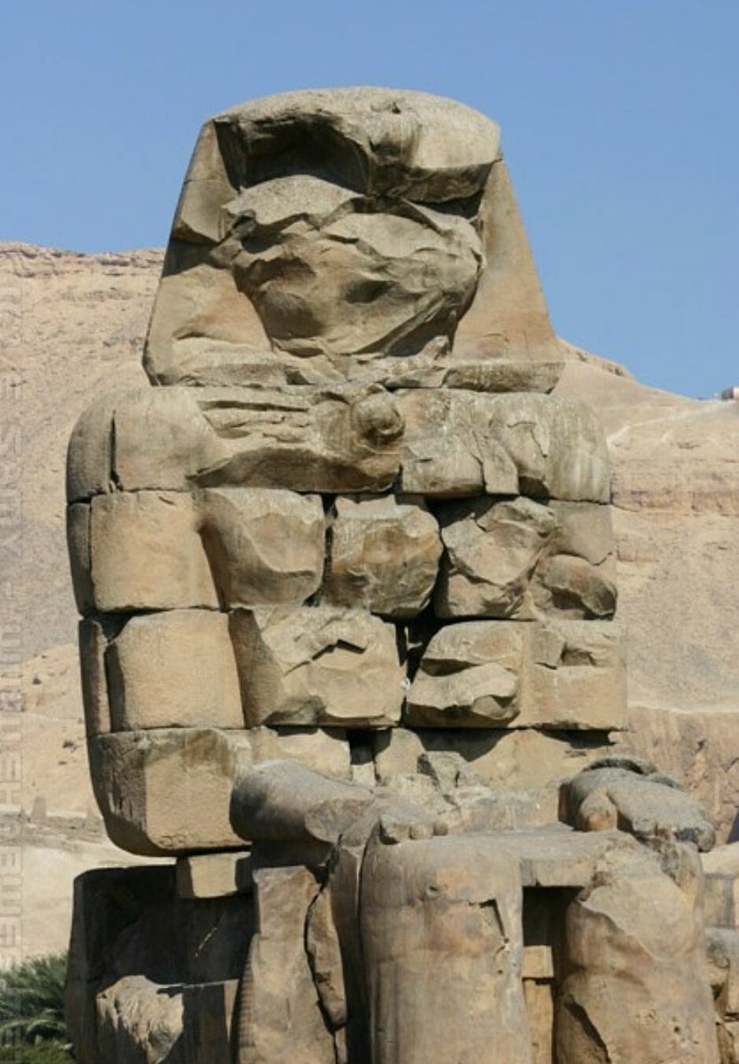 10-وبسبب تلك الأصوات كان التمثالان من إشهر المعالم قديمآ وتزايدت الإسطورة حول قصة التمثالين إلي أن قام أحد الأباطرة الرومان عام ٢٠٠ق.م الإمبراطور «سبتميوس سيفيريوس» بعمل إصلاحات للتمثال بإصلاح الشقوق وما تصدع من التمثالين وبعدها توقفت ظاهرة الصوت للأبد 👇