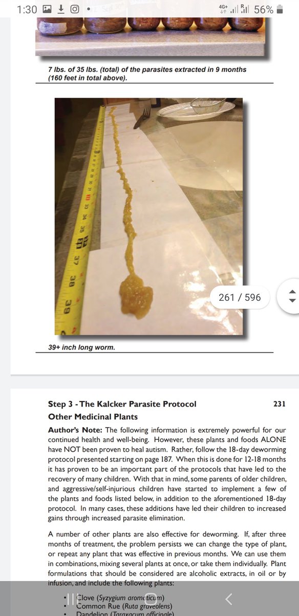 واتضح ان من الصعب على المختبرات الحديثة ان تتعرف على اغلبية الطفيليات والديدان الساكنة في الجسم . وبقيت كيري تجرب على ابنها وتتعاون مع بقية الاطباء اللذين اكتشفوا ان بعضىالمكملات تفيد وبعضها لا. واضافتها الى البروتوكول. خامسا من اسباب ضرب الامعاء والدماغ والاعصاب