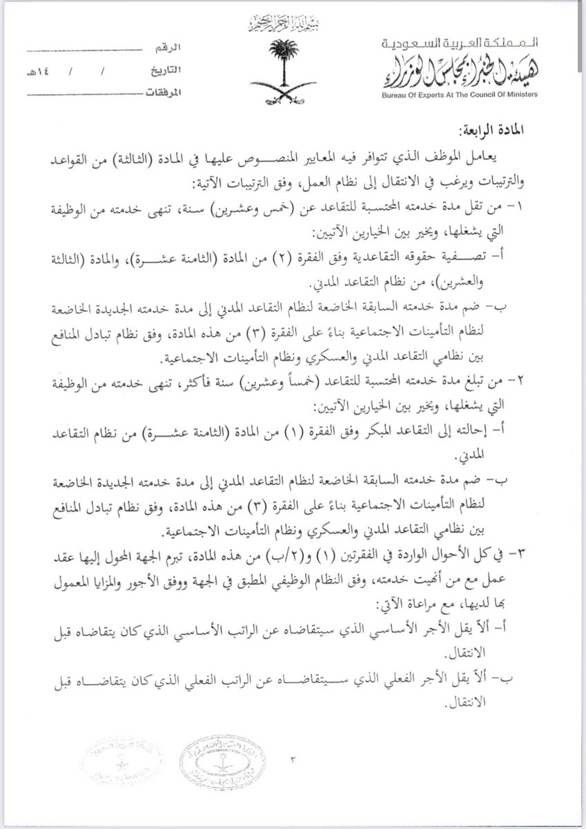 من نظام مصحلة معاشات التقاعد إلى نظام التأمينات الأجتماعية حتى يستطيع الاستفادة من الخدمة عند التقاعد