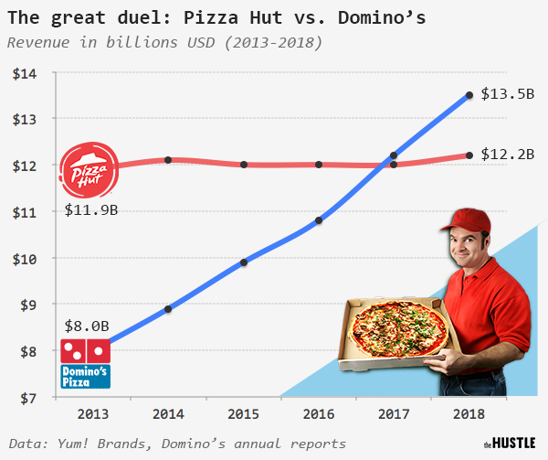 نجحت دومينوز بكسب ثقة عملائها وحسنت منتجاتها لتقفز الشركة وتزيد مبيعاتها لي تتخطى كل المنافسين.