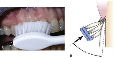 زاوية الفرشاة ومكانها يختلف في حالة وجود انحسار لثة ( نزول اللثة عن السن) وفي حالة وجود تقويم أسنان