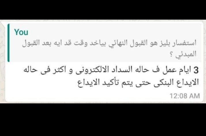 ٣- بعد مرحلة التسيق تأتي مرحلة القبول المبدئي و تاخذ هذه المرحلة ٧٢ساعة لاستخراجها.