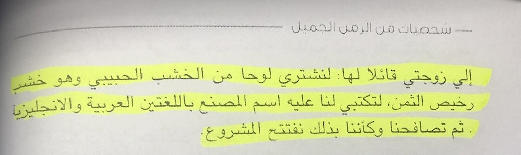وببساطة توجهت الي زوجتي قائلا لها لنشتري لوحا من الخشب الحبيبي وهو خشب رخيص الثمن،لتكتبي لنا عليه اسم المصنع باللغتين العربية و الانجليزية ، ثم تصافحنا و كأننا بذلك نفتتح المشروع"