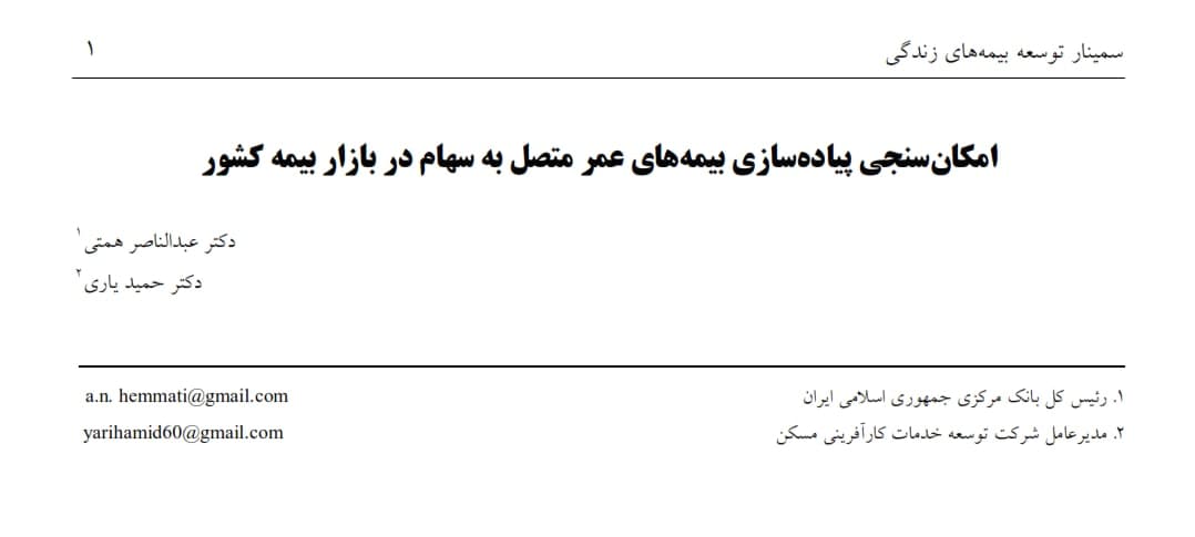 چهارسال بعد در سال ۹۷ آقای همتی این مقاله رو مجدداً به صورت کامل در سمینار توسعه بیمههای زندگی که زیر نظر خودش برگزار شده، ارائه داده و به چاپ رسونده. کل مقاله از مقدمه تا نتیجه گیری و رفرنسها کپی کاری محضه