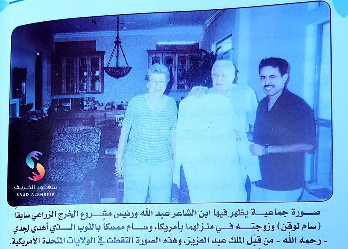 * قام الملك عبدالعزيز ( طيب الله ثراه ) بتكريم البعثة الأمريكية العاملة في مشروع الخرج الزراعي في قصره بالخرج