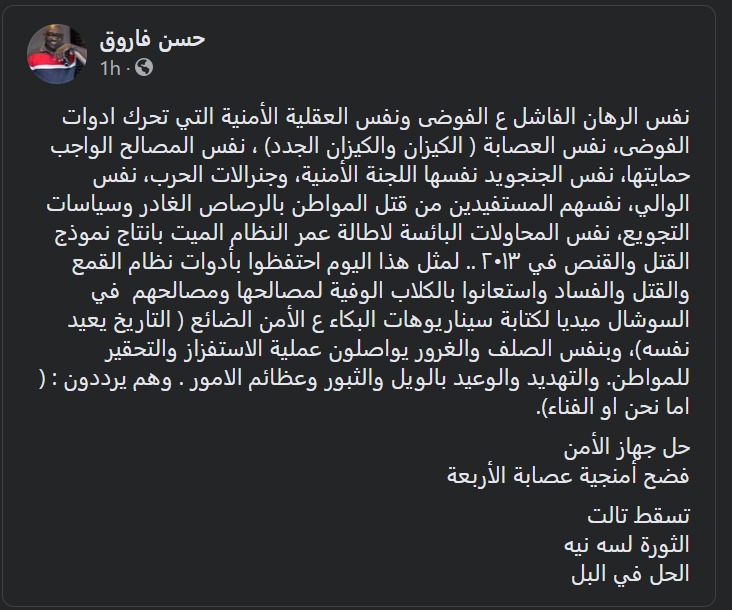 حقوا الناس توجه المطالب دي للمسؤول الحقيقي عن الفوضي و هي بلا شك السلطة الحالية