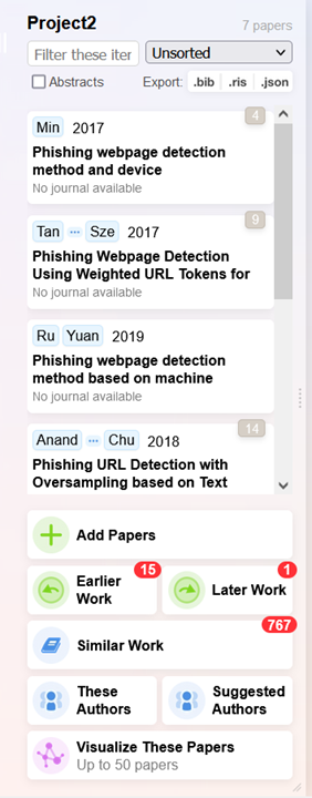 الـ Earlier work هي أعمال قديمة مرتبطة بموضوع بحثك ونلاحظ من الصورة ظهر لنا 15 عمل وعلى العكس الـ later work هي الأعمال الجديدة المرتبطة بالموضوع وهنا ظهر لنا ورقة واحدة يمكن فتح قائمة أي منهما
