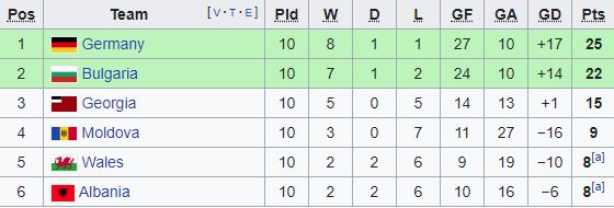 ستدخل ألمانيا قرعة التصفيات المؤهلة كتصنيف (1) ، وسيتم سحب القرعة إلى المجموعة 7 جنبًا إلى جنب: بلغاريا 🇧🇬