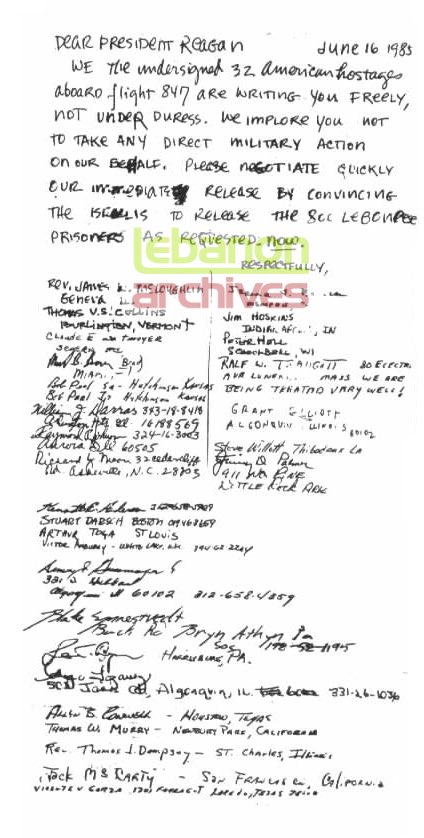 لأن الطائرة أميركية يقودها طاقم أميركي ويوجد على متنها مسافرون أميركيون ولكن أي طلب أميركي في هذا الصدد ستتم دراسته. هذا وحاولت الزوارق الحربية الاسرائيلية الاقتراب من السواحل اللبنانية مقابل المطار وتصدت لها مضادات أمل وأجبرتها على الابتعاد.