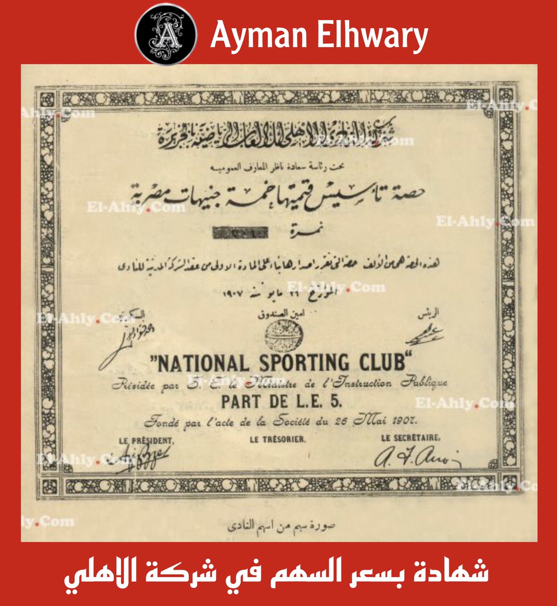 • الصورة النهائية لعقد شركة تأسيس النادي الأهلي