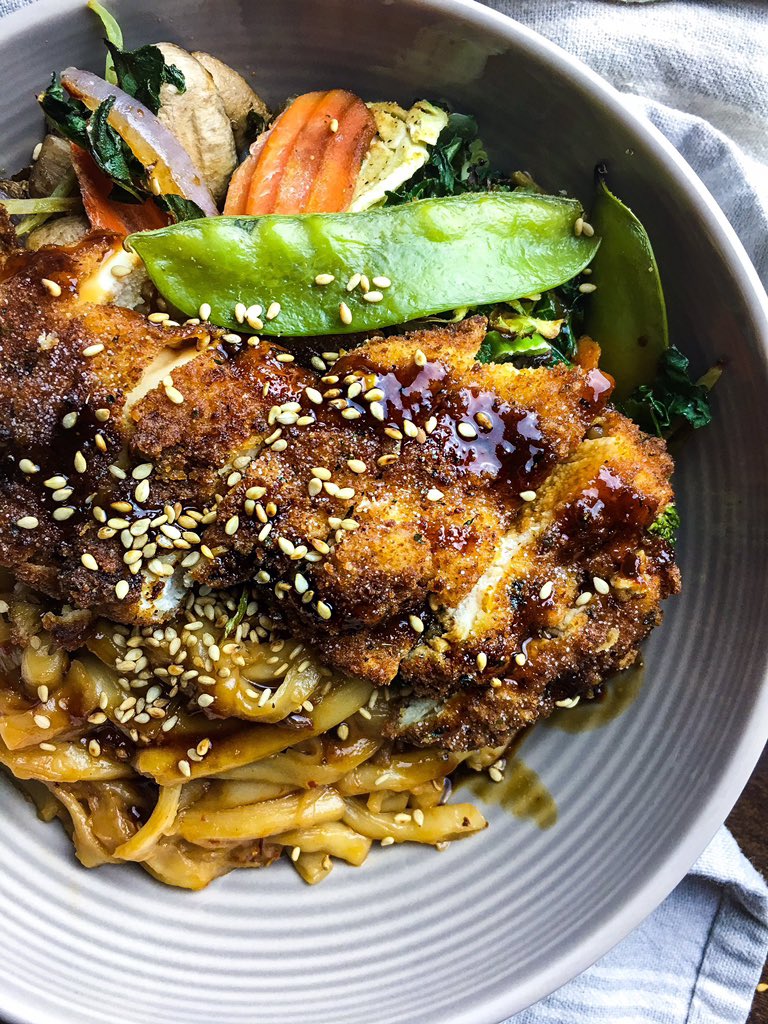 وصفة نودلز بالدجاج المقرمش 🥢🍜