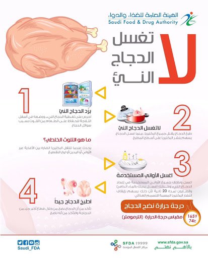 - كما ذكرت سابقاً شطف الدجاج النيء يمكن أن يتسبب في حدوث تلوث متبادل من الماء المتناثر. ولتنظيف الدجاج، يمكن ان تستخدم الطريقة المذكوره سابقاً في 9️⃣ و 1️⃣0️⃣ لانها ربما تكون اقل ضرراً لعدم تناثر الماء ⬅️