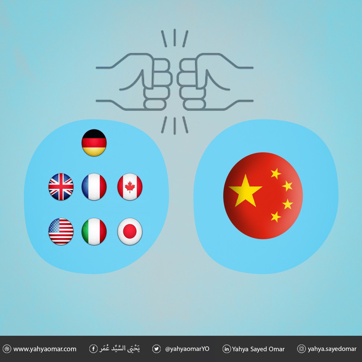 لم تلتفت بكين للتكتلات الأمريكية- الأوروبية  ضدها، واتخذت موقفا أكثر صرامة قلّلت فيه من مكانة الدول المشاركة في مجموعة السبع الكبرى، وحذرت قادتها من التوجه الفردي في اتخاذ القرارات التي تتعلق بالشؤون الدولية دون التشاور بين جميع البلدان، وحذرتها من تبنّي نهج وصفته بـ"المعادي" لها