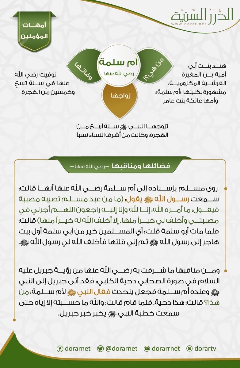 عن النبيﷺ قال:(ما من مسلم تصيبه مصيبة فيقول ما أمره الله:{إنا لهم وإنا إليه راجعون}اللهم أجرني في مصيبتي وأخلف لي خيرا منها إلا أخلف الله له خيرا منها) قالت أم سلمة:فلما مات أبو سلمة قُلتها فأخلف الله لي رسول اللهﷺ. رواه مسلم