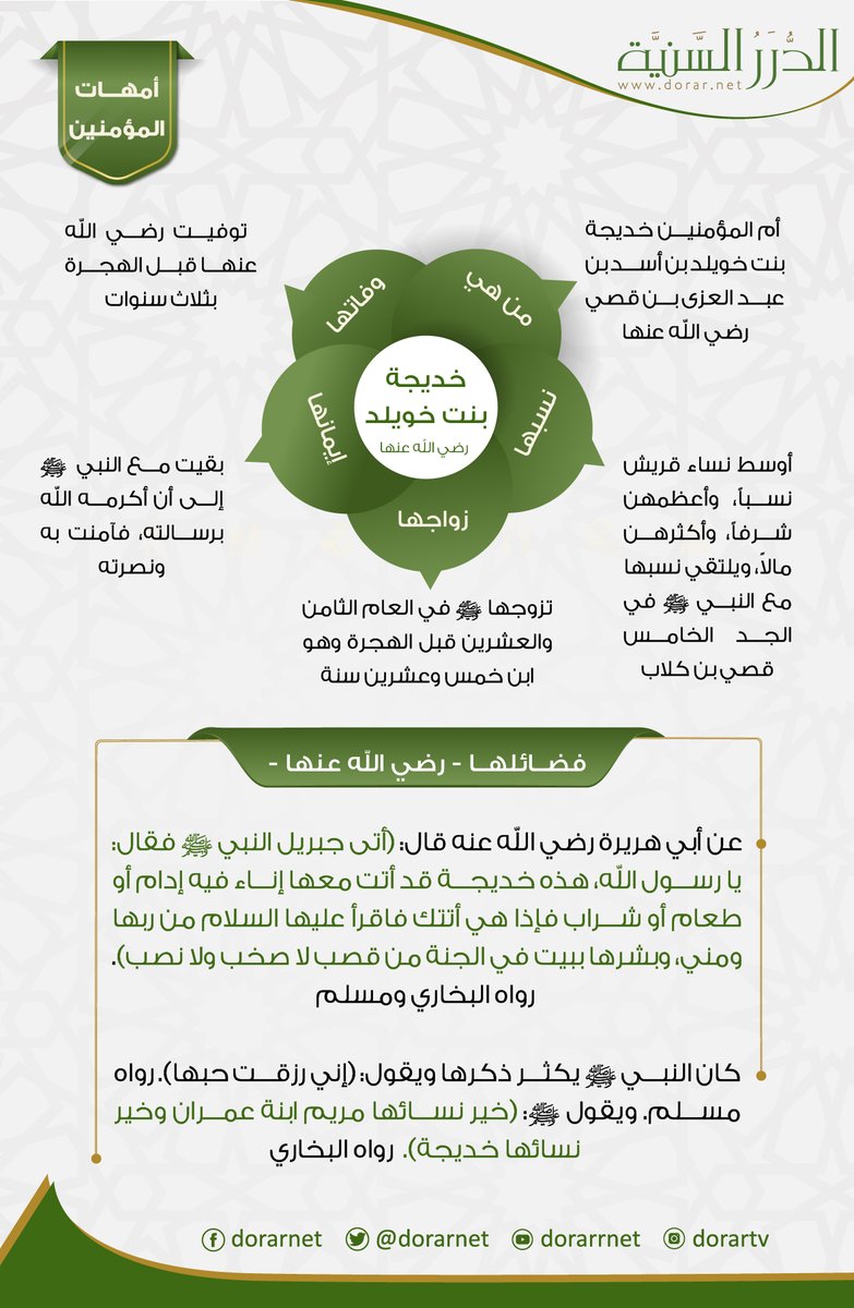 كان النبي صلى الله عليه وسلم يُكثِر مِن ذِكْر خديجة رضي الله عنها ويقول (إني قد رُزِقْتُ حُبَّها). #رواه_مسلم
