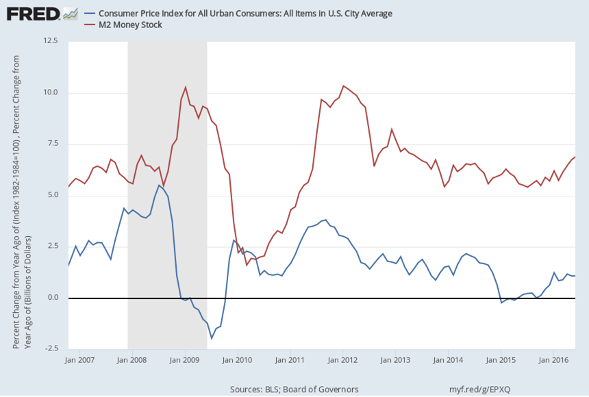 6. لأن أساس المعادلة خطأ. فالسيولة لا تعني التضخم. فبحسب النظرية النقدية الكمية فإن التضخم يساوي العرض النقدي مضروبا في تسارع النقد مقسوما على حجم "الاقتصاد الحقيقي".