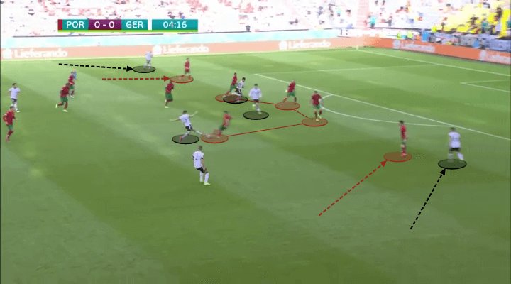 يشير هدفان بالذات إلى أن المدافعين البرتغاليين لم يستمتعوا بأفضل مبارياتهم ولكن كان من المثير للقلق أن مدربًا يتمتع بخبرة مثل سانتوس لم يكن لديه أي حل على الإطلاق لهيمنة ألمانيا على الأطراف.