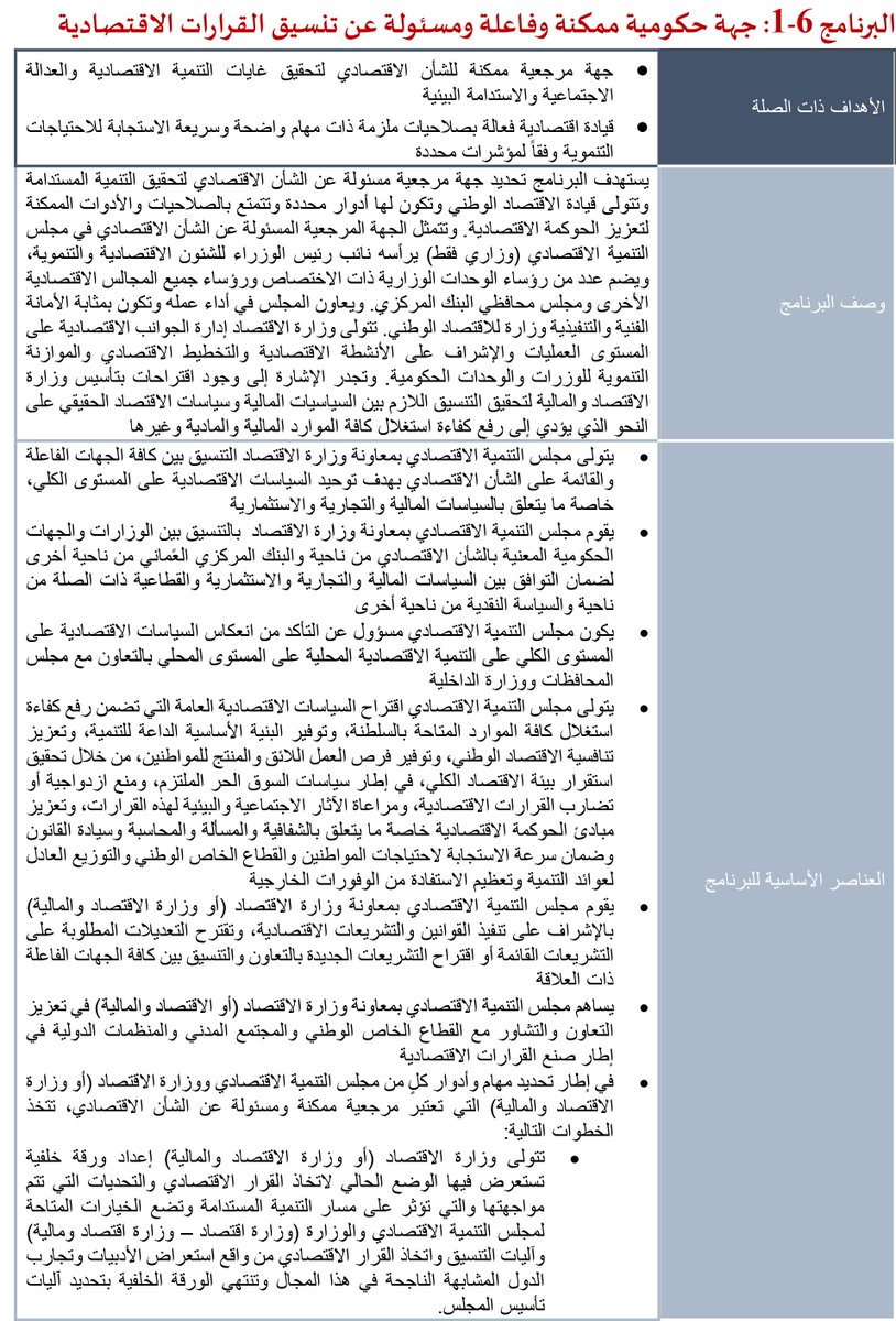 مجلس التنمية الاقتصادي إحدى مشاريع #الخطة_الخمسية_العاشرة حسبما جاء في محور "اقتصاد بنيته تنافسية" يتولى المجلس بمعاونة #وزارة_الاقتصاد التنسيق مع كافة الجهات الفاعلة والقائمة على الشأن الاقتصادي بهدف توحيد السياسات الاقتصادية على المستوى الكلي.